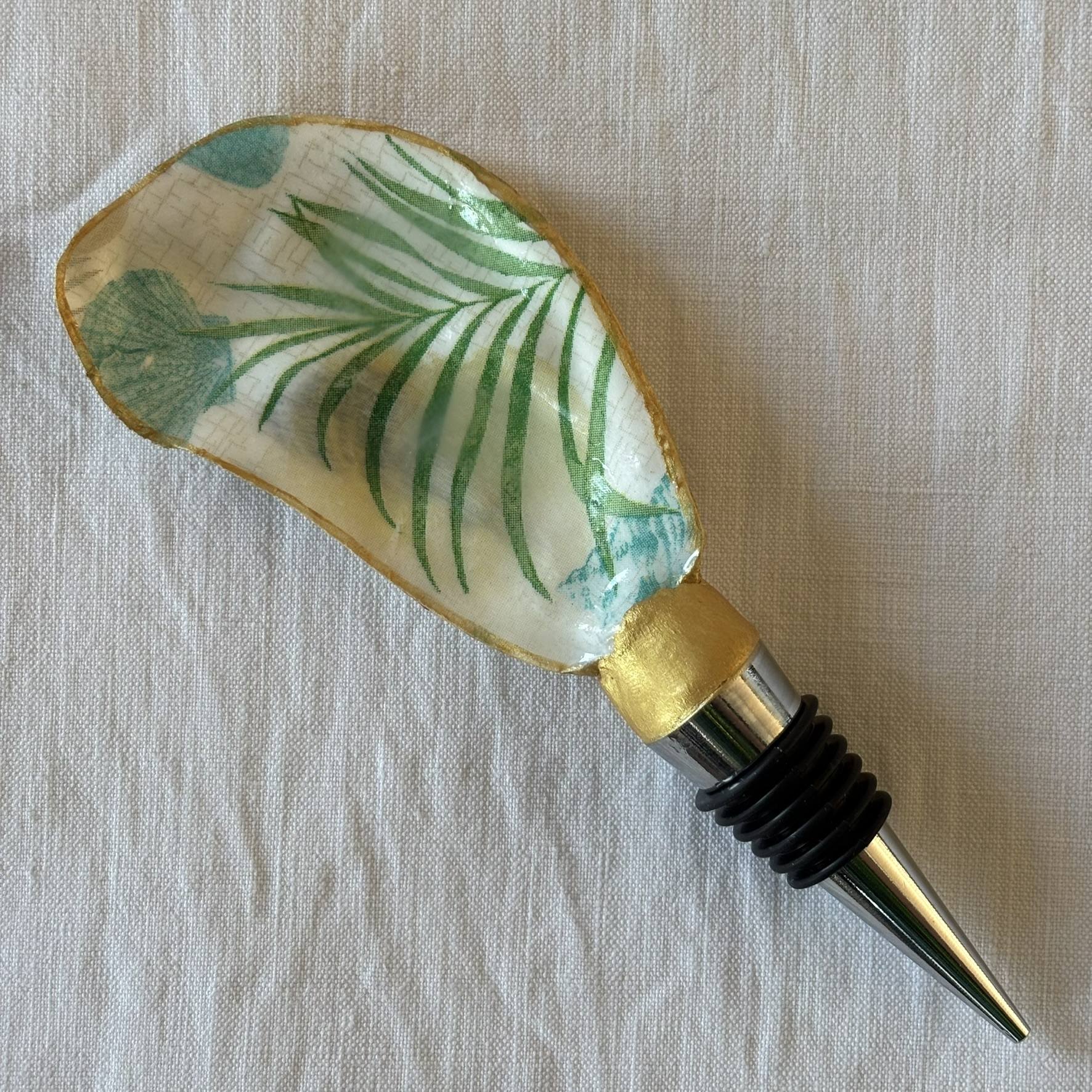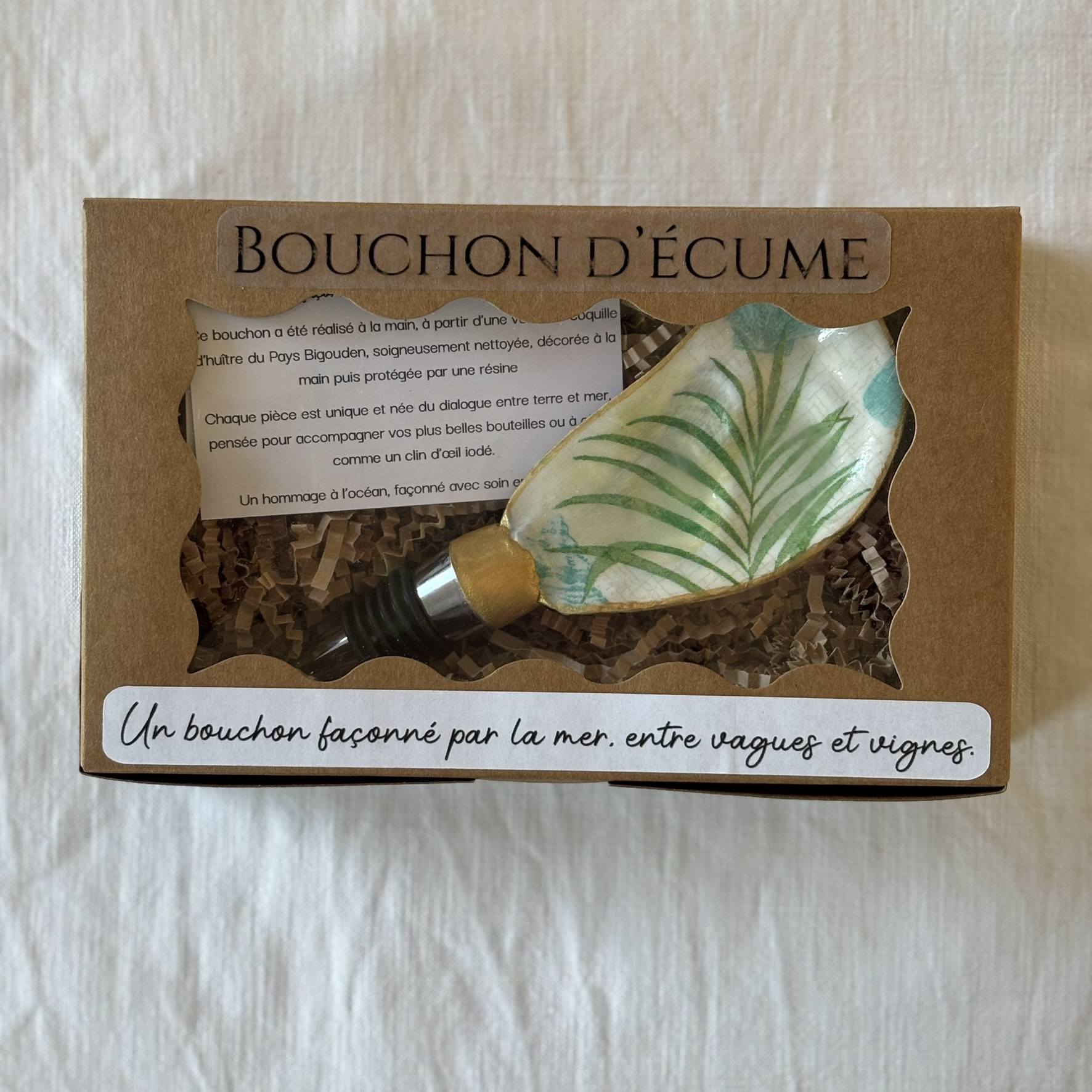Apportez une touche d’exotisme et d’élégance à vos moments de dégustation avec ce bouchon de vin original motif tropical marin. Conçu à partir d’une véritable coquille d’huître du Pays Bigouden, il allie le charme naturel des matériaux façonnés par la mer à la fraîcheur d’un décor inspiré des paysages tropicaux et des rivages marins.