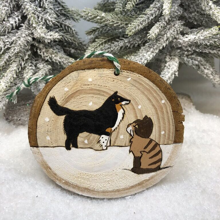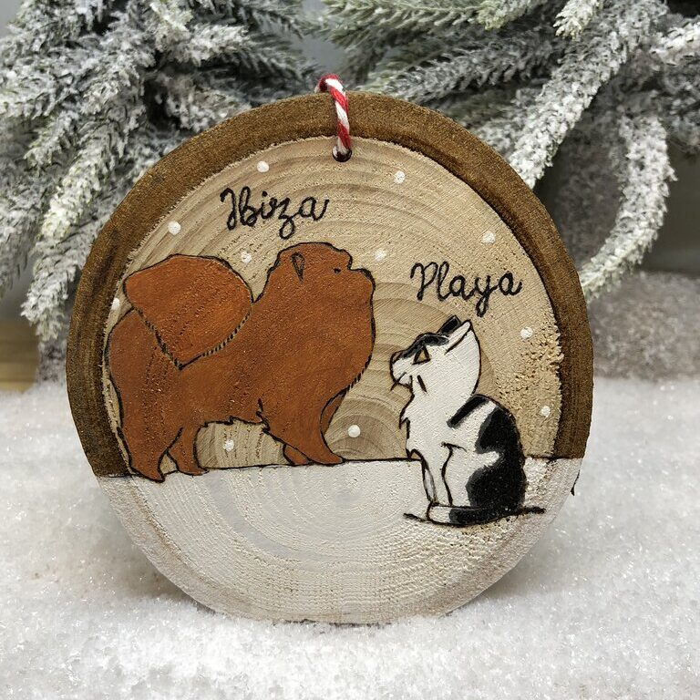 Vous adorez votre chien et votre chat et souhaitez apporter une touche personnelle à votre décoration de Noël ? Découvrez cette décoration de Noël en bois personnalisée aux couleurs de votre animaux de compagnie ! Mes rondelles en bois pyrogravées et peintes à la main sont une manière unique et chaleureuse de célébrer votre compagnon pendant les fêtes.