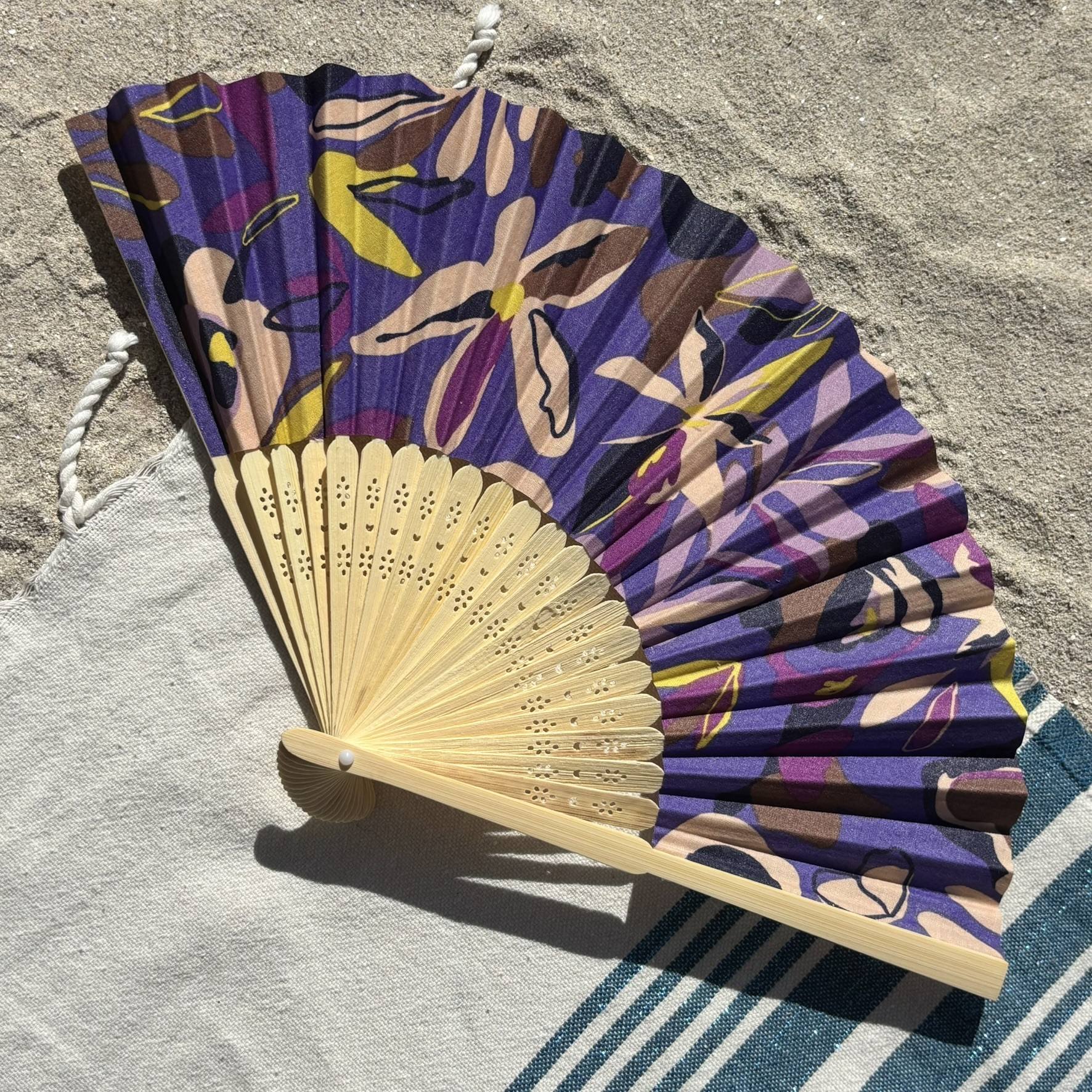 Cet éventail original motifs floraux violets est un indispensable pour traverser les journées chaudes avec confort et élégance. Léger et pliant, il se range aisément dans un sac à main ou une pochette et vous accompagne partout : à la plage, en ville ou lors d’un mariage en extérieur. Comme tous nos modèles en tissu, il demande une manipulation délicate : l’épaisseur du textile peut rendre l’ouverture et la fermeture moins rapides, mais cela garantit une meilleure tenue et un rendu unique. Utilisé avec soin, il devient un accessoire pratique et chic, parfait pour l’été.