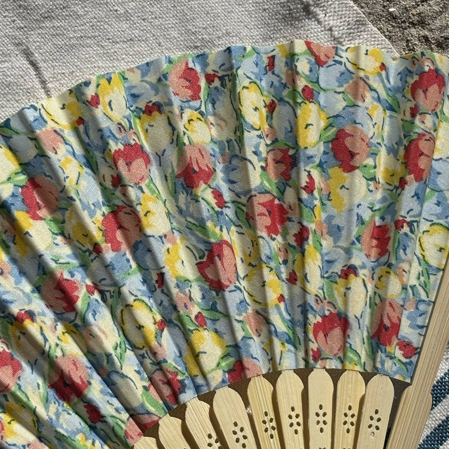 Cet éventail original motifs tulipes est l’allié idéal pour allier fraîcheur et élégance durant les journées ensoleillées. Léger et pliant, il se glisse facilement dans un sac à main ou une pochette et vous accompagne partout : au quotidien, en vacances ou lors d’un événement en extérieur. Comme pour tous nos modèles en tissu, il demande une manipulation délicate : l’épaisseur du textile peut ralentir légèrement l’ouverture et la fermeture, mais cela garantit une belle tenue et un rendu raffiné. Utilisé avec soin, il devient un accessoire pratique et esthétique incontournable de l’été.