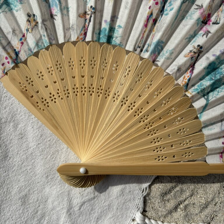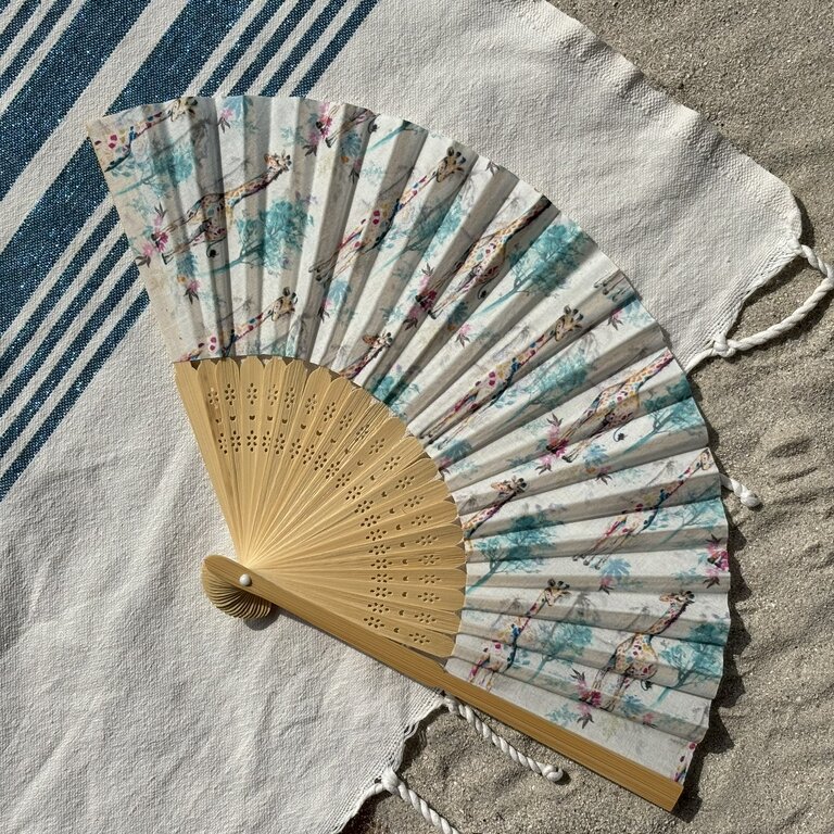 Commandez dès maintenant votre éventail personnalisé en tissu à motif girafes multicolores