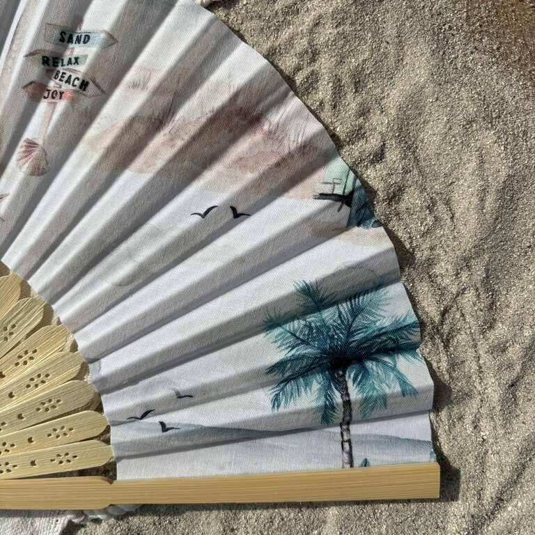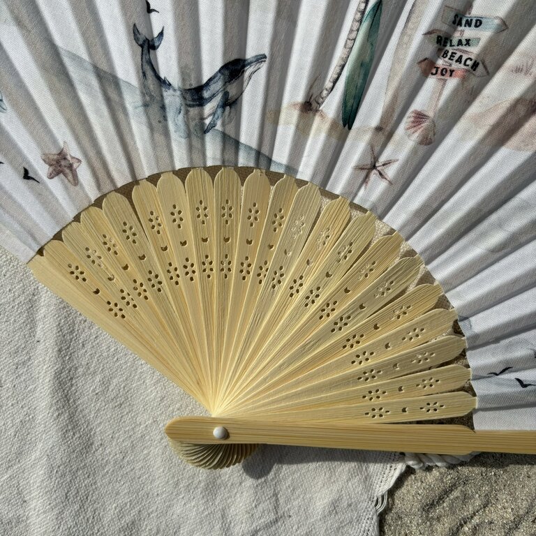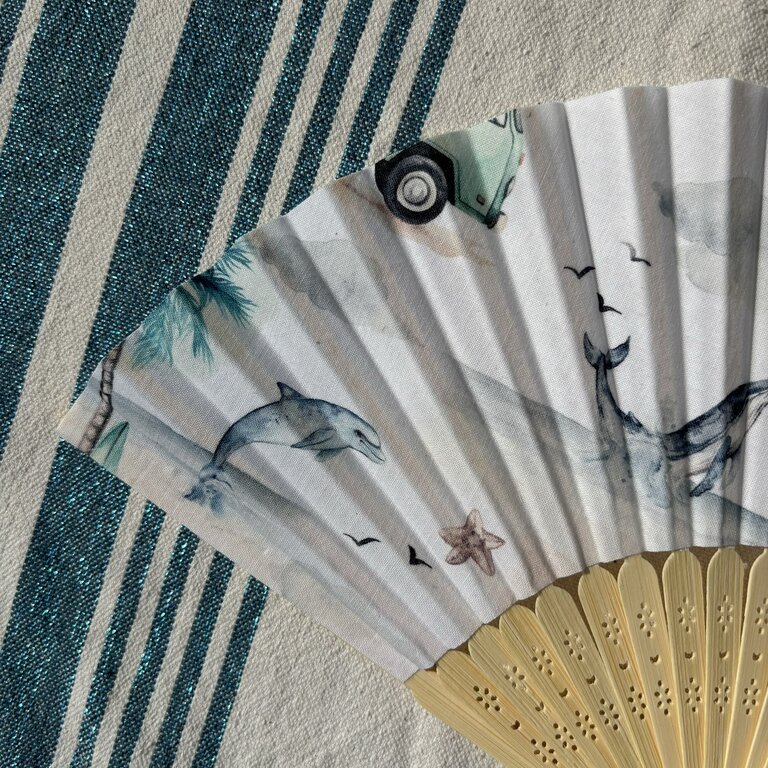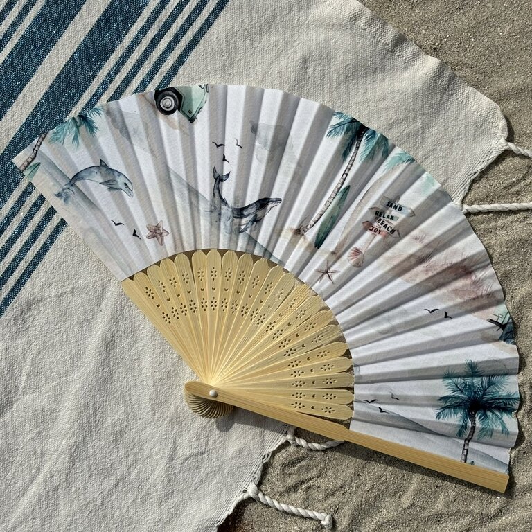 Commandez dès maintenant votre éventail personnalisé en tissu à motif plage mer surf baleine
