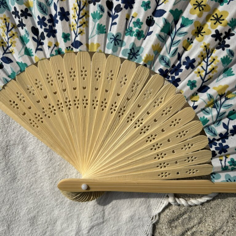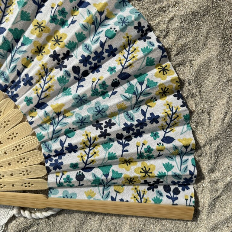 Découvrez l’élégance de cet éventail personnalisé en tissu à petites fleurs bleues et jaunes : fraîcheur, qualité et durabilité en un geste ! Avec son tissu au style fleuri, cet éventail fabriqué à la main combine élégance et engagement durable. Confectionné avec un tissu répondant aux normes OEKO-TEX, cet éventail est le choix idéal pour ceux qui cherchent à allier style et respect de l’environnement.