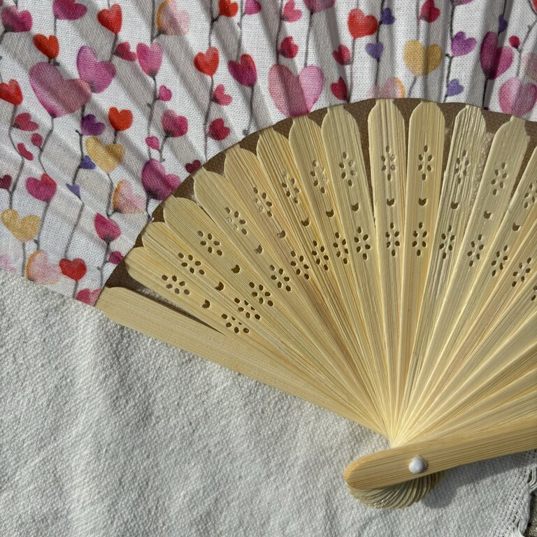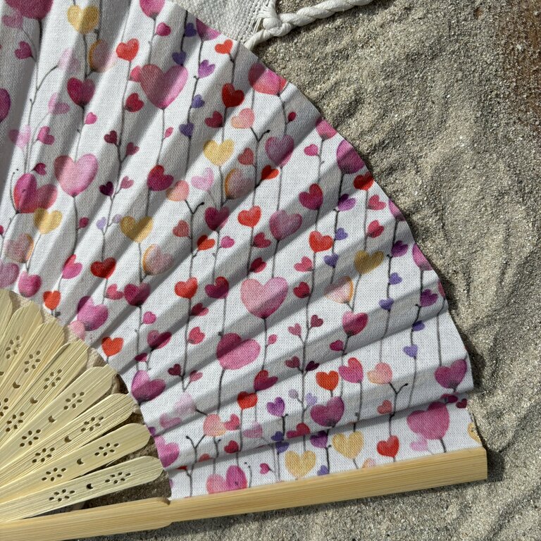 Commandez dès maintenant votre éventail personnalisé en tissu à petits cœurs roses pastel