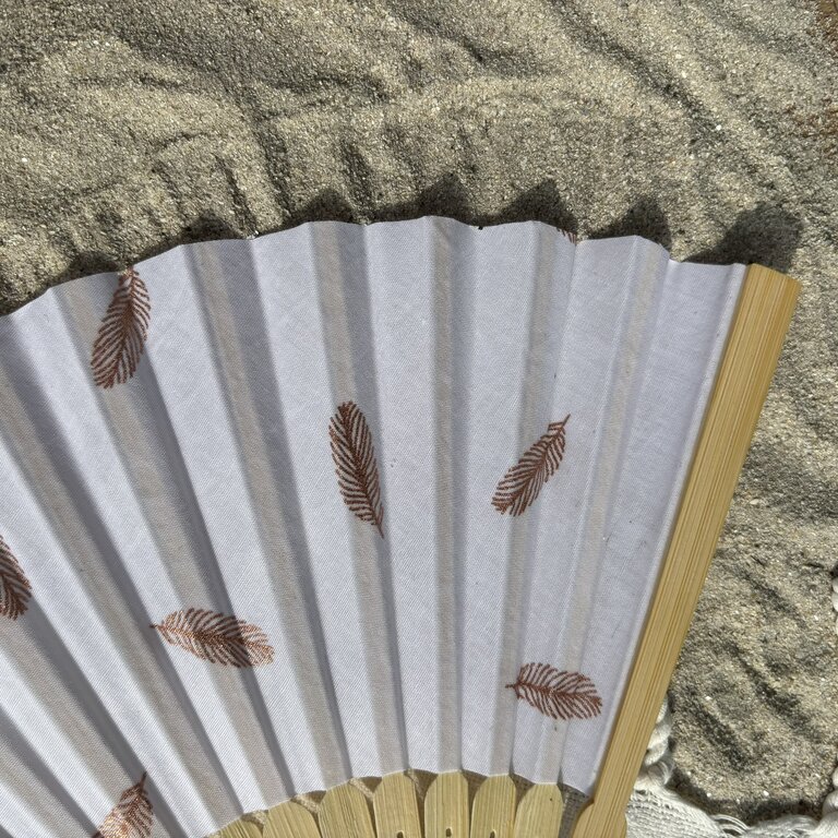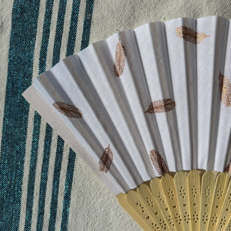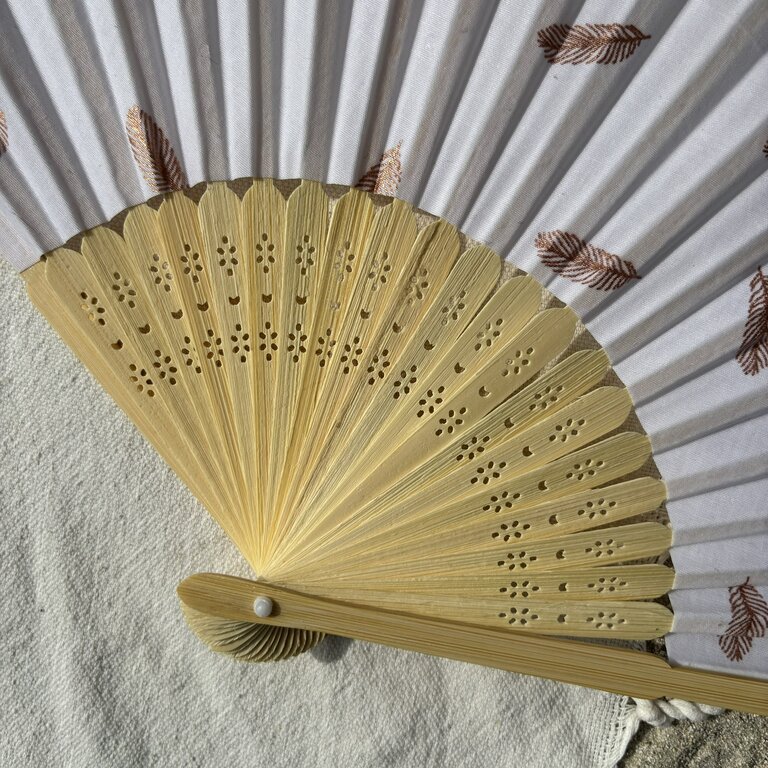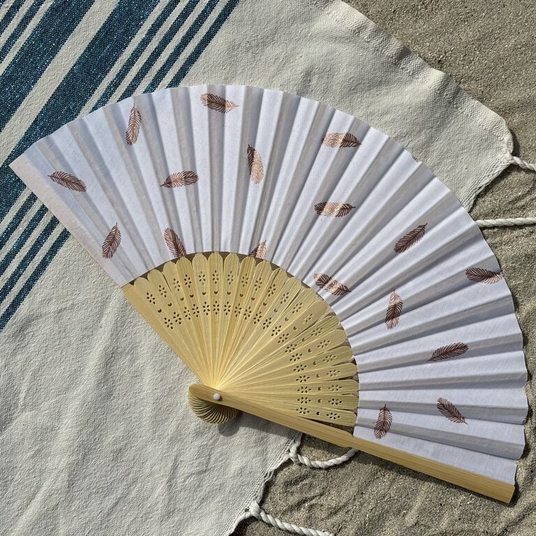 Découvrez l’élégance de cet éventail personnalisé en tissu à plumes rose doré sur fond blanc : fraîcheur, qualité et durabilité en un geste ! Avec son tissu au style épuré, cet éventail fabriqué à la main combine élégance et engagement durable. Confectionné avec un tissu répondant aux normes OEKO-TEX, cet éventail est le choix idéal pour ceux qui cherchent à allier style et respect de l’environnement.