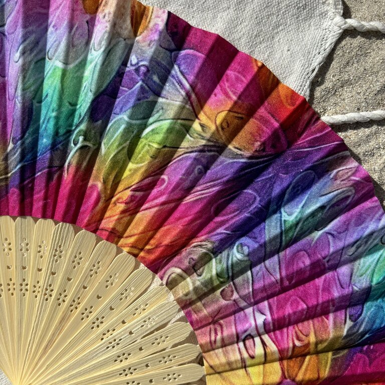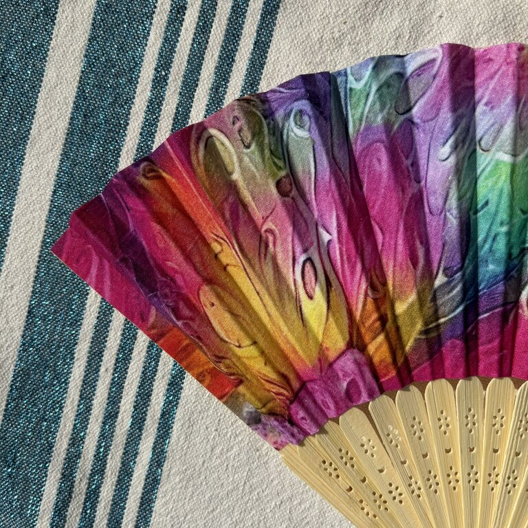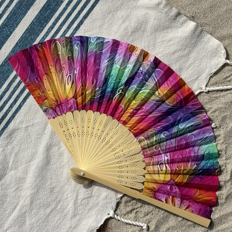 Commandez dès maintenant votre éventail personnalisé en tissu aux motifs multicolores