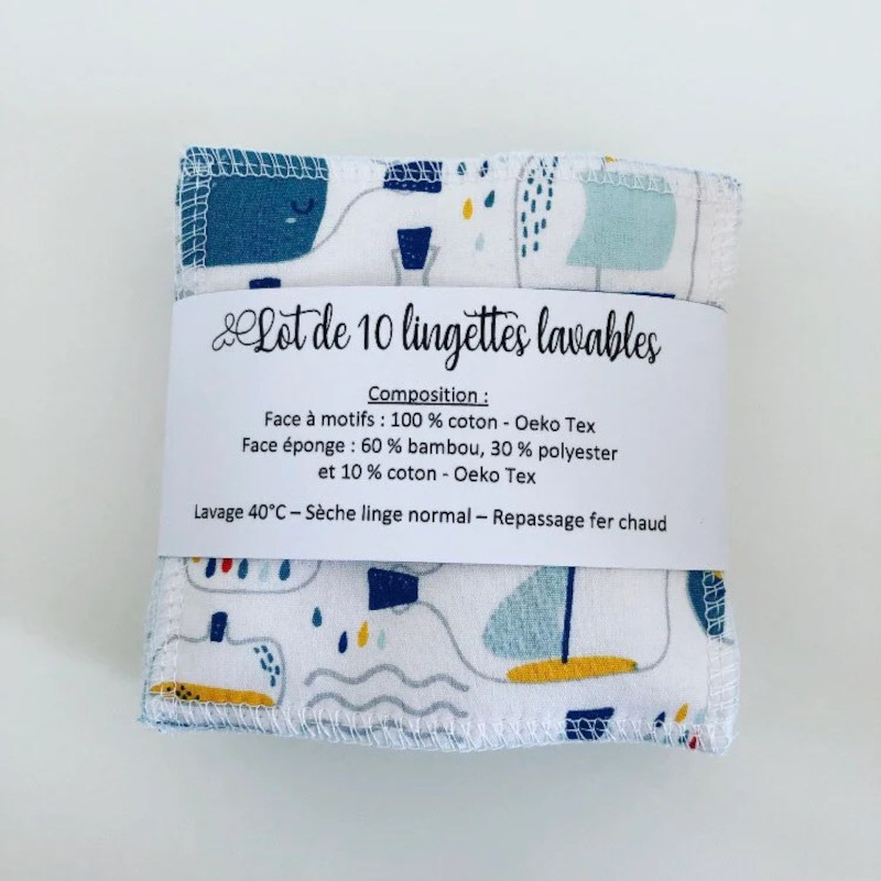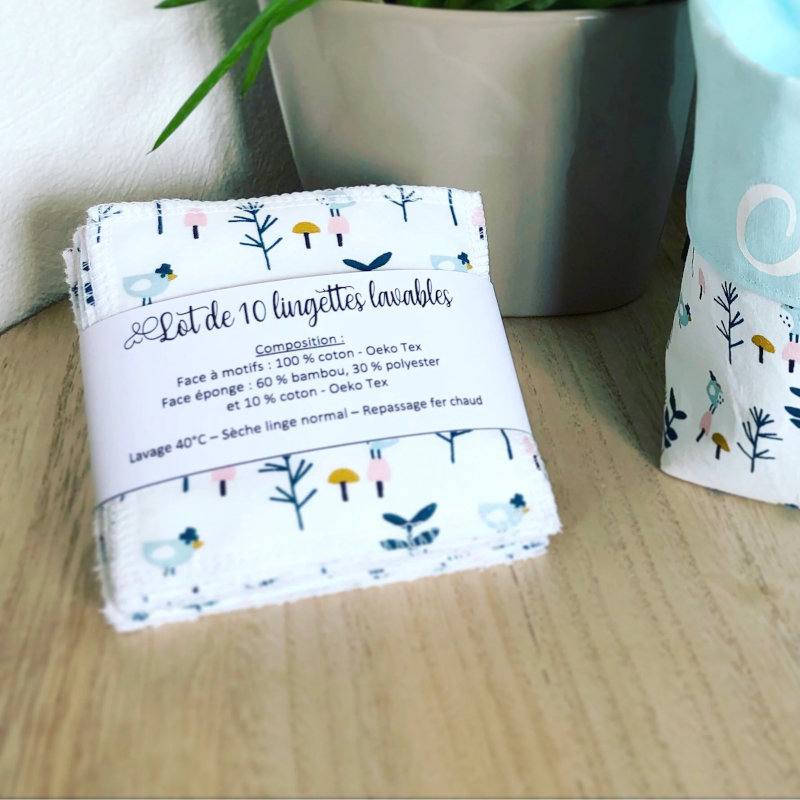Ces lingettes sont confectionnées à la demande dans mon atelier en Bretagne, avec des tissus certifiés Oeko-Tex, pour prendre soin de votre peau… et de la planète.