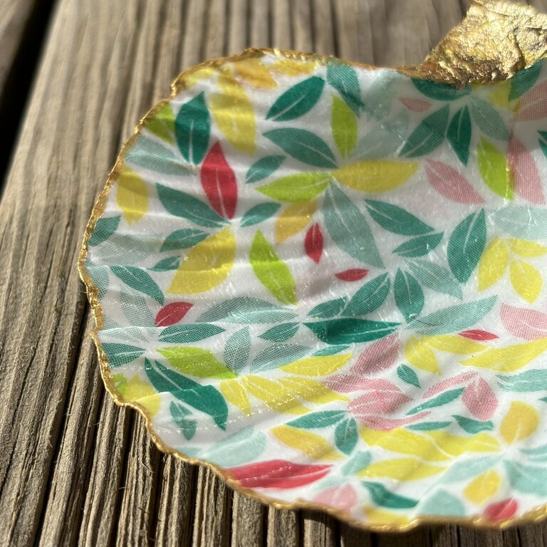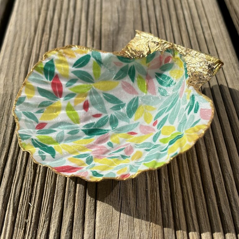 Découvrez mon repose bijoux en coquille Saint Jacques à feuilles multicolores : un accessoire élégant, éco-responsable et énergisant, idéal pour sublimer et recharger vos bijoux et pierres naturelles. Plongez dans mon univers artisanal inspiré par l’océan, où chaque pièce raconte une histoire unique.