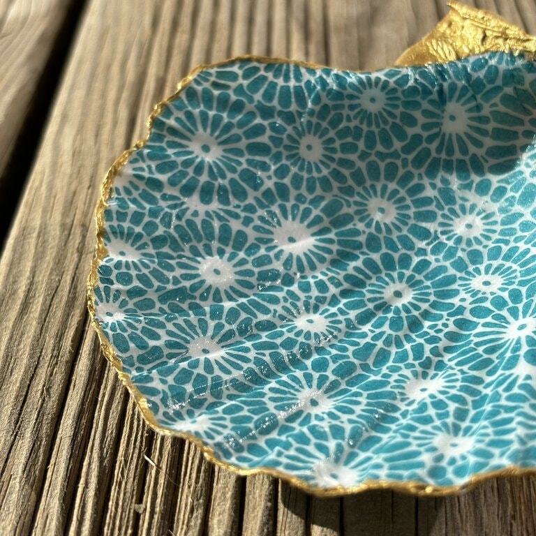 Chaque coquille que je sélectionne est soigneusement choisie et transformée avec respect pour son histoire et sa provenance. J’embellis chaque coquille avec des dorures effectuées à la main, offrant ainsi un support unique où le design artisanal rencontre la beauté naturelle de la mer.