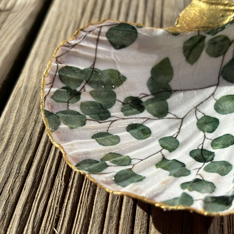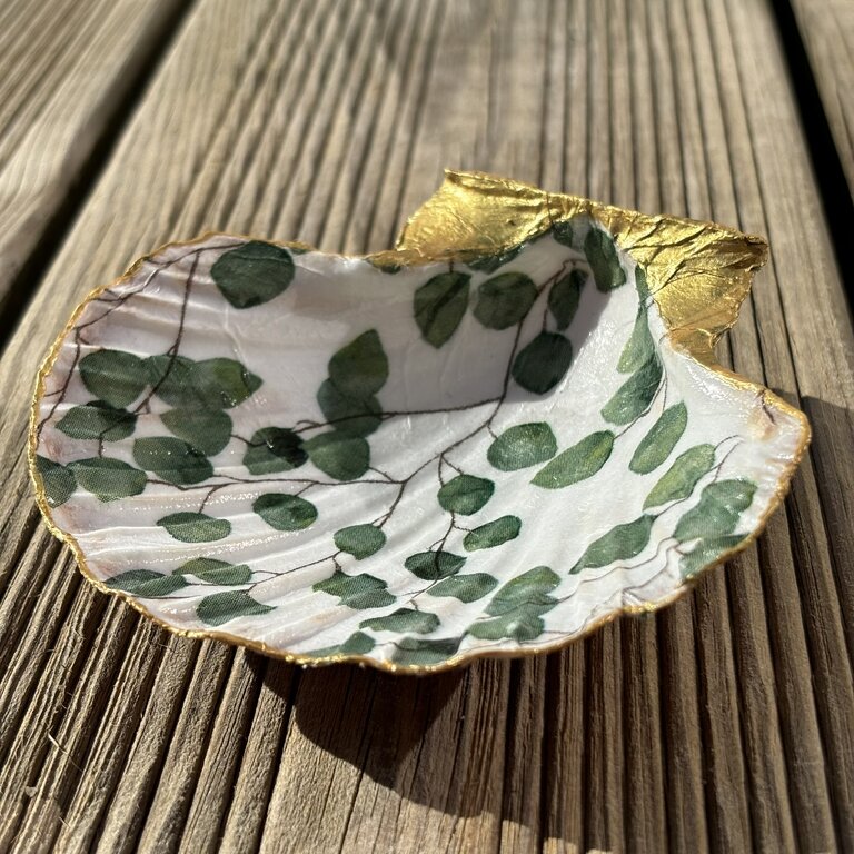 Découvrez mon repose bijoux en coquille Saint Jacques motif eucalyptus : un accessoire élégant, éco-responsable et énergisant, idéal pour sublimer et recharger vos bijoux et pierres naturelles. Plongez dans mon univers artisanal inspiré par l’océan, où chaque pièce raconte une histoire unique.
