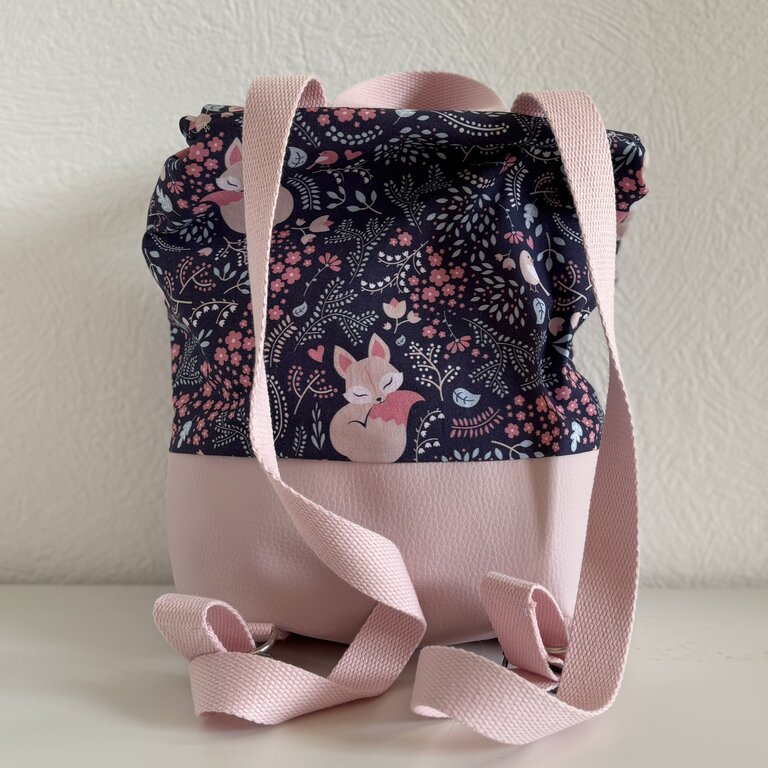 Le bas du sac est en simili cuir, ce qui lui assure une bonne tenue et une résistance accrue au quotidien. Les autres tissus sont en coton 100 % et certifiés Oeko-Tex, doux et sans substances nocives. Les bretelles, également en coton, sont ajustables en longueur pour s’adapter à la morphologie de votre enfant et évoluer avec lui.